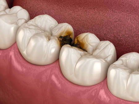 Decayed tooth diagnosis and treatment. 3D illustration.