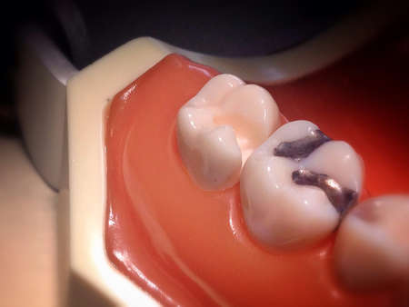 treatment tooth decay with subsequent filling with photopolymer material. Close-up, macro