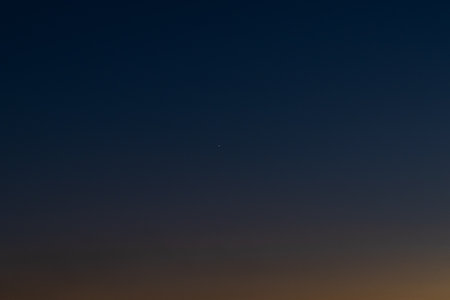 A clear sky at dusk with the first stars appearing, creating a soft gradient from blue to orange as day turns to night.