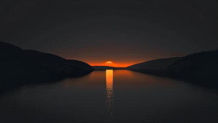 Captivating sunset scene over tranquil water, showcasing vibrant colors and serene atmosphere. Perfect for nature lovers and photography enthusiasts.