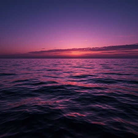 Experience the tranquil beauty of a stunning sunset over a calm horizon. The fading colors create a serene atmosphere, perfect for relaxation and reflection in nature.