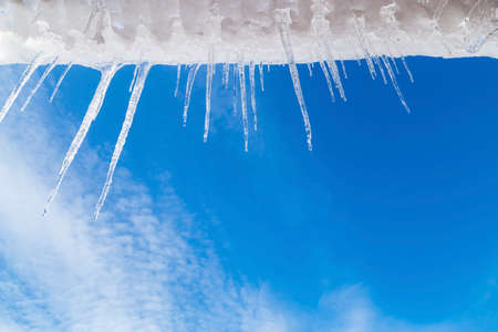 Beautiful icicles in winter. Concept for winter and frost.