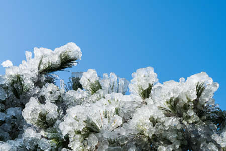 pine needles covered with ice , winter nature background