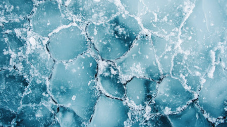 From above, the frozen river reveals intricate cracked ice patterns, photography captures the cool blues and whites