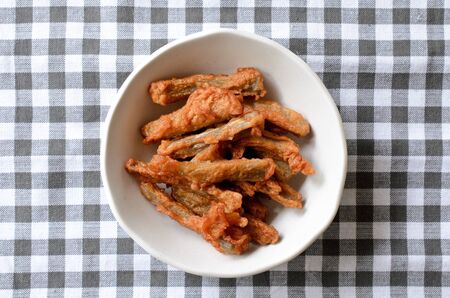 Close up of Asian Deep fried Shishamo fish,thai street food market