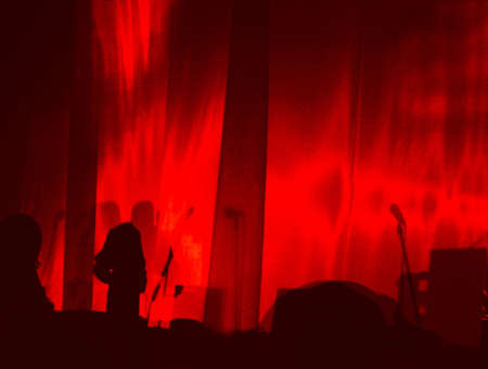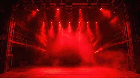 Stage filled with swirling red smoke, creating a dramatic and intense atmosphere