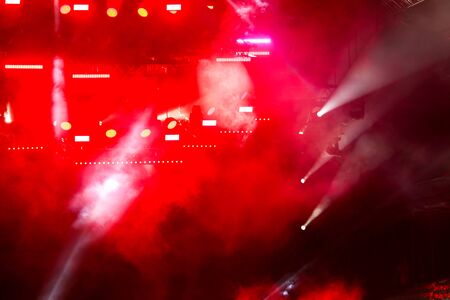 Blurred image background of red stage lights. Party, concert and entertainment concept