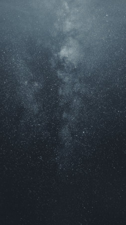 Explore the enchanting beauty of a vast cosmic scene featuring a dark nebula and a star-filled sky, enveloped in serene clouds, evoking wonder and tranquility.
