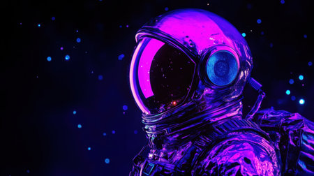 A stunning portrait of a futuristic astronaut immersed in vibrant colors, surrounded by cosmic elements. Perfect for themes of exploration and imagination.