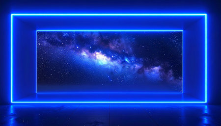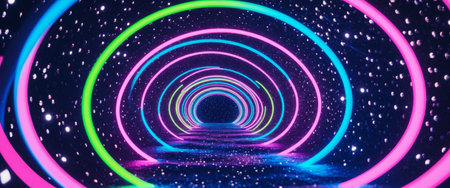 AI Generated. A tunnel of neon circles with a starlit background
