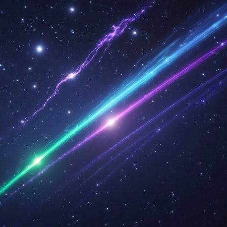 A vibrant comet streaks across a star-studded sky, its tail a mesmerizing display of colors.