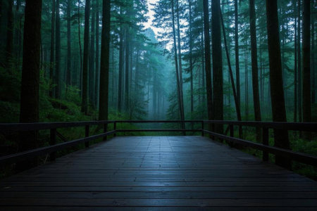 Quiet Forest Plank Road, Quietness of Misty Forest