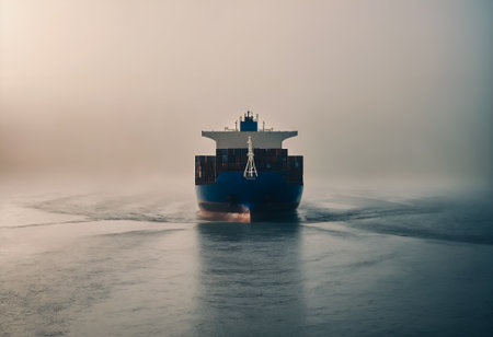 Large cargo container ship carrying shipments sailing across ocean. Import-export business. Generative AI