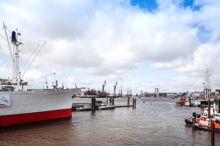 HAMBURG, GERMANY - CIRCA MAY 2017: Hamburger Hafen (Port of Hamburg) sea port on the river Elbe, hdr