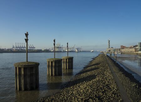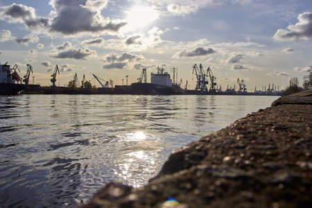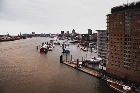 Hamburg ships and river joint in the background photography of Hamburg district at Hamburg harbor in daylight