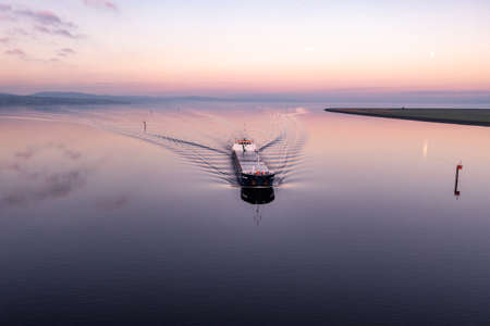 Derry Londonderry, United Kingdom- December 17 2021 : Cargo ship arriving in Northern Ireland