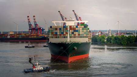 Hamburg - June 16, 2022: The harbor in Hamburg,