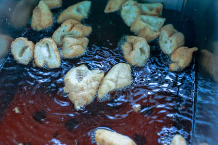 Delicious bites cook in hot oil bubbling and turning golden brown filling the air with savory aromas.