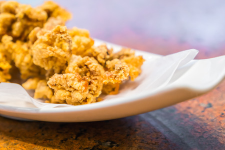 Fried squid on white plate