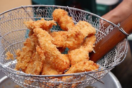 frying battered pork in deep fryer for dish