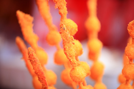 Fish ball fried on Floating oil, focus selective.