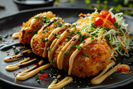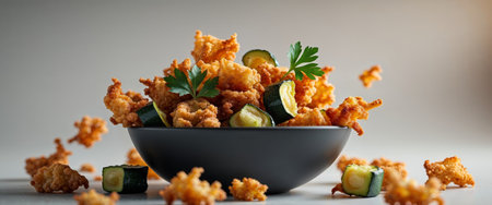 AI Generated. crispy fried zucchini tempura served in black bowl