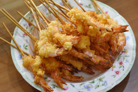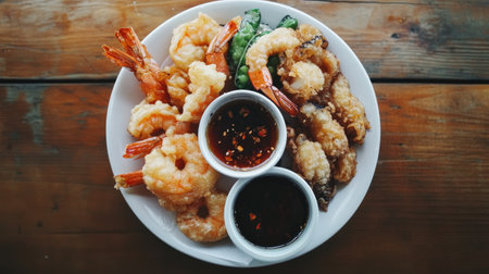 deep fried seafood (shrimps and squid) with mix vegetable - unhealthy food style