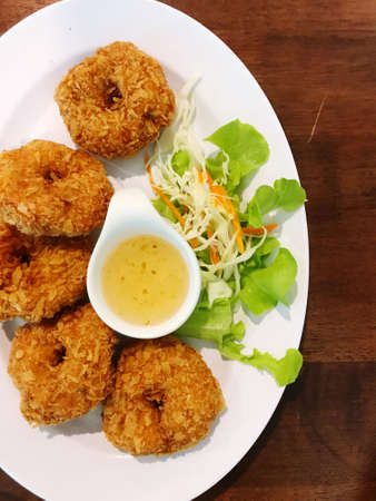 Fresh fried thai no name meatballs served with sweet chilli sauce. Traditional asian cuisine.