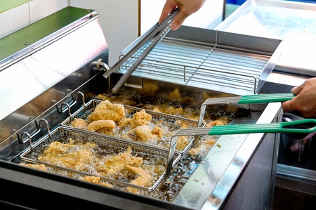 frying battered pork in deep fryer for dish