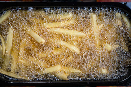 potatoes are fried in oil. Freshly cooked popular food. Side dish