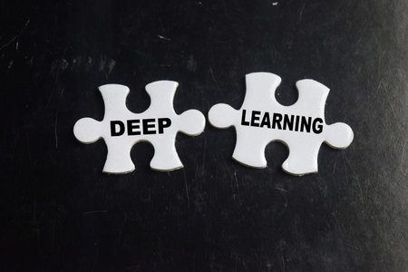 Piece of jigsaw puzzle with word deep learning. Business and finance concept