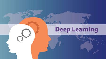 a deep learning concept illustration with human robotic head and map as background vector graphic illustration
