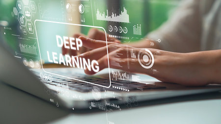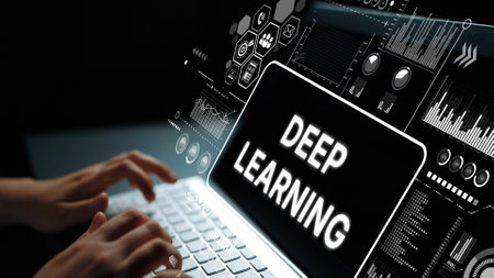 Deep Learning and Artificial Intelligence Innovation Shown in Futuristic Digital Interface.