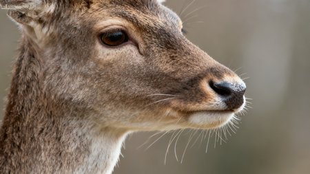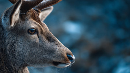 This close-up profile of a deer highlights its stunning features, including intricate fur patterns and a captivating eye. The serene background enhances the natural beauty of wildlife.