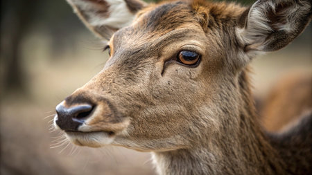 This close-up portrait captures the serene beauty of a deer with detailed fur and expressive eyes, showcasing its individuality in a natural setting.