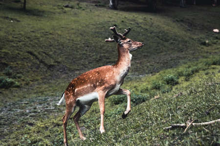 Deer in the forest. Wild animal in the forest. Wildlife scene