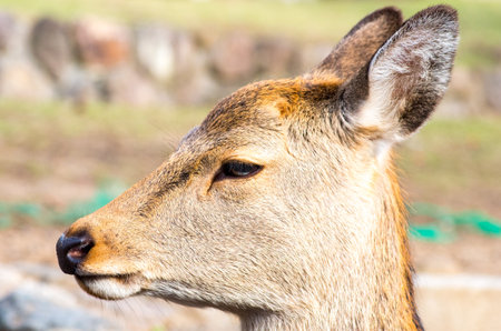 Cute Deer roaming freely in Nara Deer Park in Nara, Japan