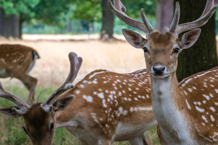 Red deer fallow deer majestically powerful animal in the forest. Animals in the natural forest. The wild nature landscape. Deer garden.