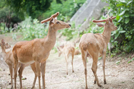 Spotted deers or chitals (Axis axis) in zoo, in Thiruvananthapuram, Kerala, India