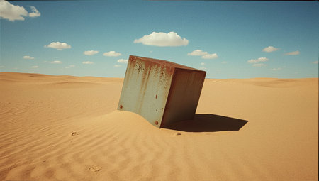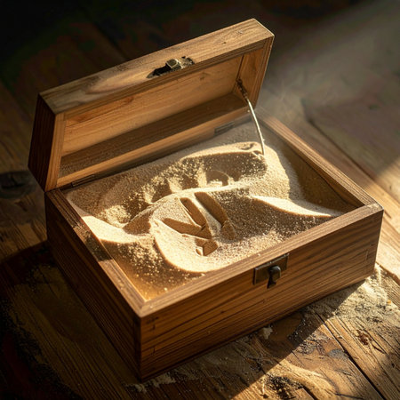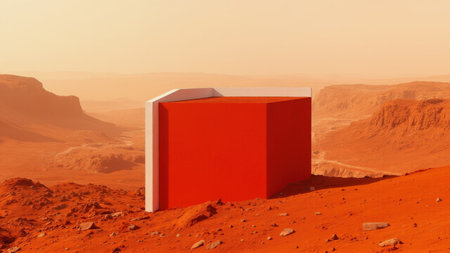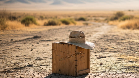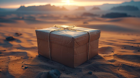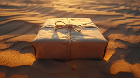 Minimalist Beige Box on Textured Surface with Dramatic Shadows and Warm Lighting.