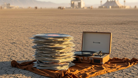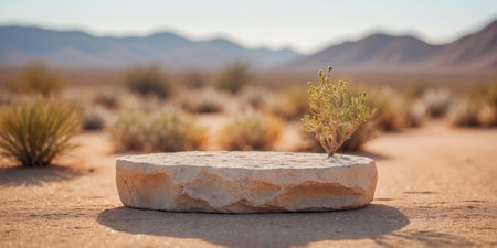 AI Generated. Empty Desert Stone Podium in Arid Landscape