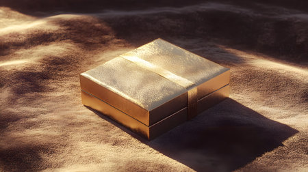 Versatile gold box with light and shadow, perfect for packaging mockups, product presentations, and modern branding. Add your designs to this template.