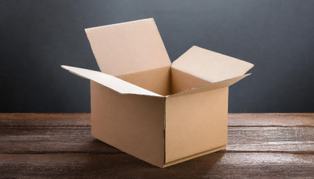 Detailed photograph of an open cardboard box, showing its flaps, sturdy structure, and neutral design. Perfect for representing storage, shipping, moving, e-commerce packaging, or recycling