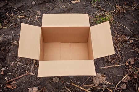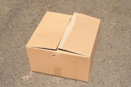 Corrugated cardboard box on asphalt