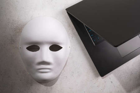 Cyber protection and security concept. Internet hacked computer server, database, network storage, firewall, social network account. 202