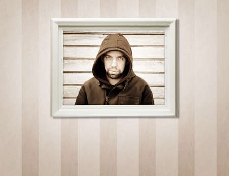Male face through the hole in paper