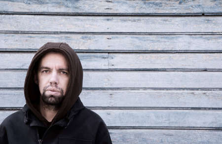 Portrait of a man in a black hoodie looking at camera