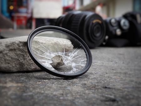 The camera dropped to the ground, causing the filter to break, the len and the body damaged. In the accident insurance concept on property