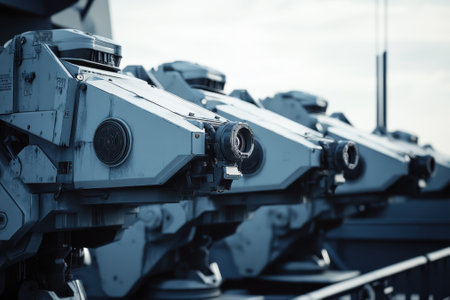 Modern weapons on the deck of a military ship. Weapon system for defense