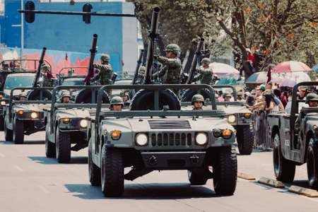 Convoy of Military Vehicles Demonstrates Military Strength on Street